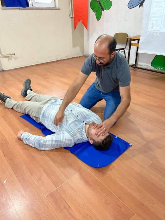 Dünya İlkyardım Günü münasebetiyle ilkyardım sertifikası bulunan okul rehber öğretmenimiz Ahmet YAVUZKURT ve sınıf öğretmenimiz Yusuf EKER eğitim verdiler.